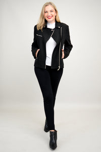 Trendy, moto-style jacket meets natural fibre.