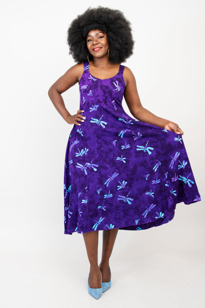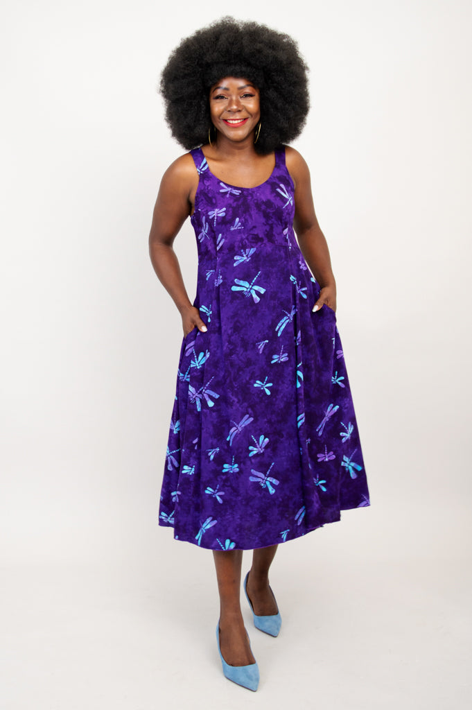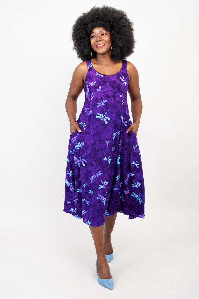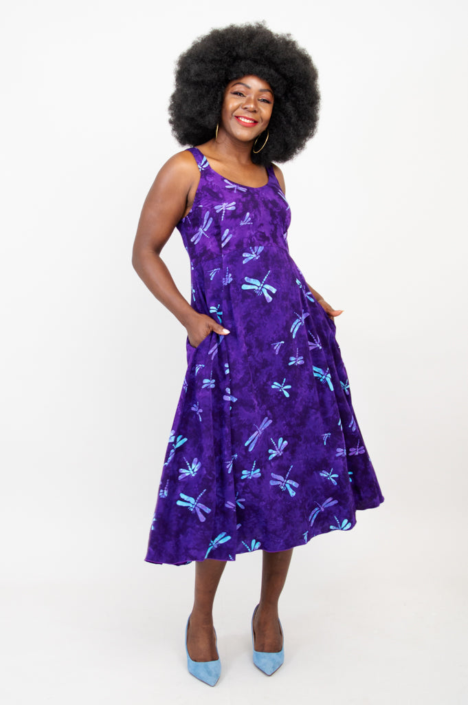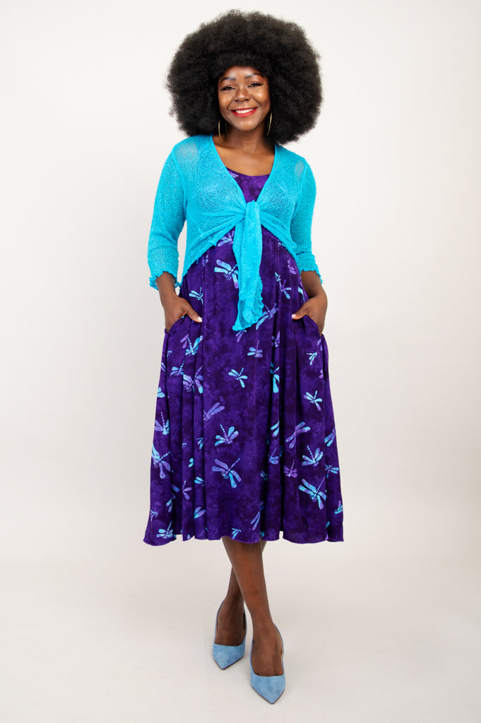 The Shauna is a true Blue Sky favourite. It features an empire waist, A-line skirt and pockets. The back of the bodice is shirred for a perfect fit and enhances all figures. The straps are ample for concealing your bra, so wear it alone or pair it with a shrug for more coverage.