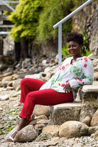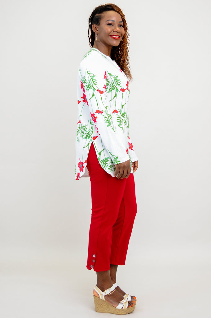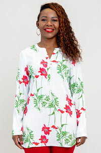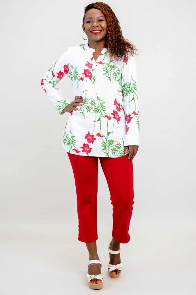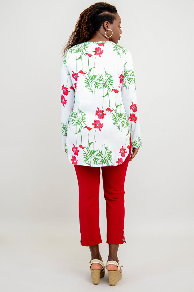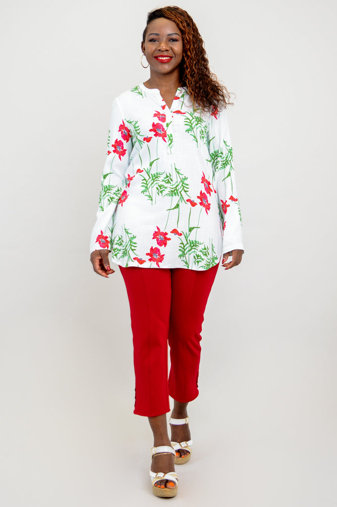 Tara L/S Blouse, Poppies, Linen Bamboo - Final Sale